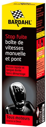 Bardahl Gear Box Stop Leak — це присадка-герметик для механічних коробок передач, яка додається в трансмісійну оливу для усунення витоків і відновлення ущільнень без розбирання вузлів.