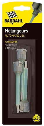 Аксесуар для дозування та змішування Bardahl Melangeurs Automatiques X3 – це змінний змішувальний наконечник, призначений для роботи з двокомпонентними клеями. Забезпечує правильне та рівномірне змішування компонентів (основи та активатора) у необхідній пропорції, що гарантує якісний результат під час використання.