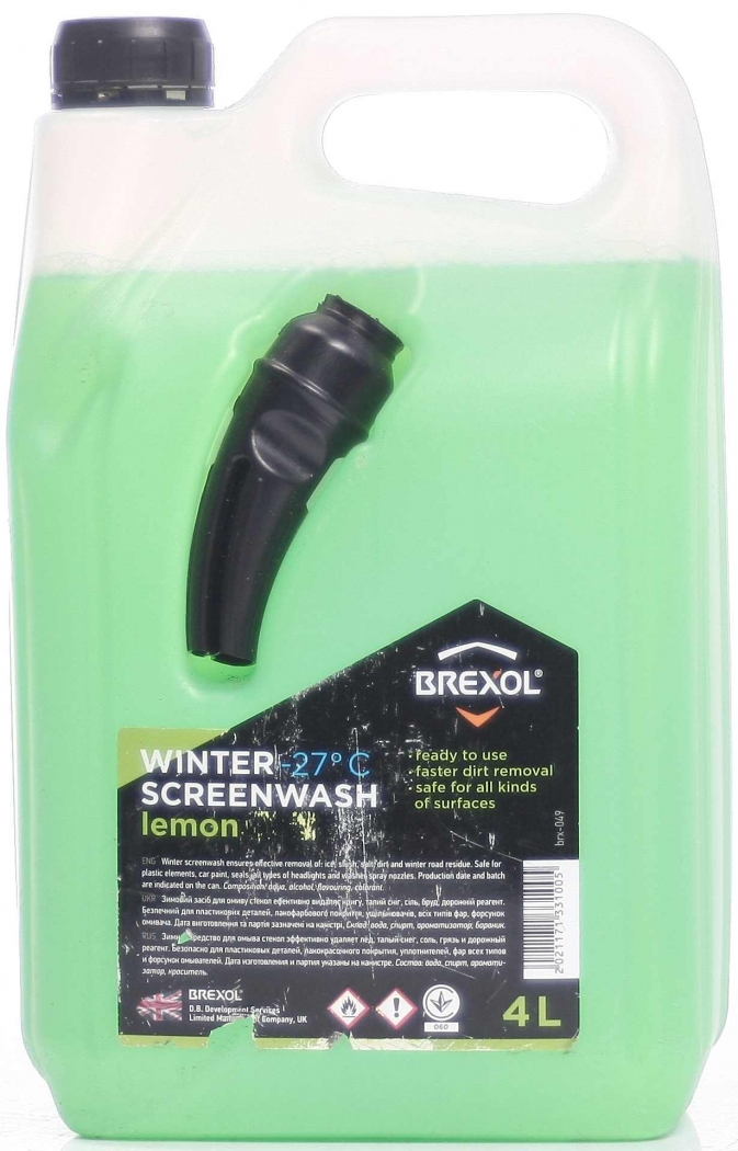 Brexol Lemon –27 °C — готова до використання зимова рідина омивача скла, призначена для ефективного очищення лобового скла, фар та дзеркал у холодний період року. Забезпечує надійний захист від замерзання до –27 °C та зберігає високу мийну здатність навіть у складних зимових умовах.