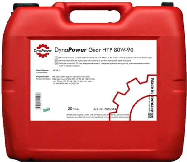 DynaPower Gear HYP SAE 80W-90 – класична гіпоїдна трансмісійна олива, призначена для використання в редукторах, диференціалах, ведучих мостах, роздавальних коробках, а також у деяких типах коробок передач, що працюють у дуже важких умовах та під постійним високим навантаженням.