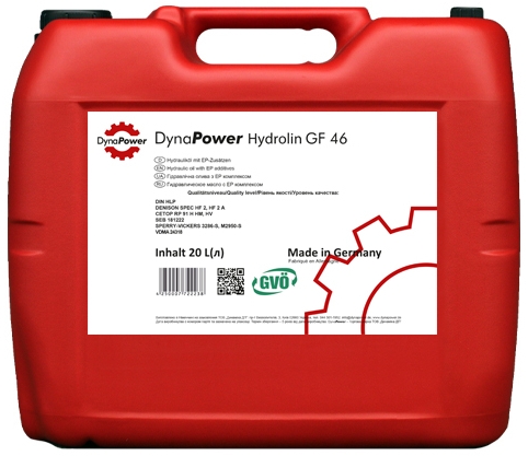 DynaPower Hydrolin GF 46 — високоякісна гідравлічна олива преміум-класу, призначена для застосування в сучасних гідравлічних системах промислового та мобільного обладнання. Виготовляється на основі ретельно очищених базових олив із додаванням збалансованого пакета присадок.