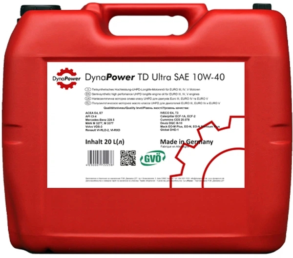 DynaPower TD Ultra SAE 10W-40 – моторна олива класу UHPD, призначена для дизельних вантажних автомобілів нового покоління екологічних класів Euro IV та Euro V, а також для техніки попередніх років випуску.