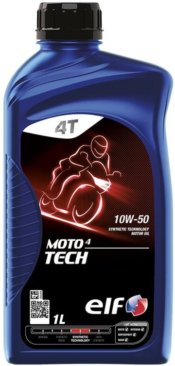 Elf Moto 4 Tech 10W-50 — високоякісна моторна олива для 4-тактних мотоциклів нового покоління, що забезпечує ефективну та тривалу роботу двигуна на повній потужності. Продукт успішно пройшов випробування в змаганнях.