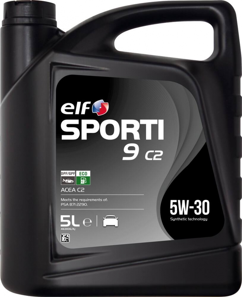 Elf Sporti 9 C2 5W-30 — високопродуктивна моторна олива на базі синтетичної технології, призначена для змащення сучасних бензинових і дизельних двигунів. Спеціально розроблена для сумісності із системами додаткового очищення вихлопних газів.