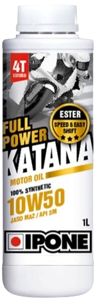 Це і інші особливості забезпечили Ipone Full Power Katana 10W50 заслужену популярність серед мотоциклістів.