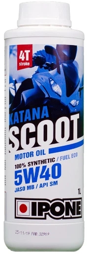 Ipone Katana Scoot 5W-40 – 100% синтетичне моторне масло високого класу. Його повністю синтетична основа гарантує надійне змащування та стійкість масляної плівки навіть у складних умовах, за високих температур і довгих інтервалів заміни. Це масло створене для тих, хто прагне найкращого для свого скутера.