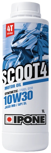 Ipone Scoot 4 10W-30 — високоякісне напівсинтетичне моторне масло для скутерів. Сучасна формула та клас в’язкості 10W-30 забезпечують легкий запуск двигуна в холодну пору року, сприяють економії пального та ефективно захищають мотор від зносу.