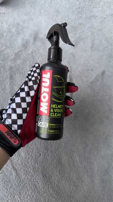 Розпиліть MOTUL Helmet & Visor Clean з відстані близько 20 см на зовнішню поверхню шолома та візора.
