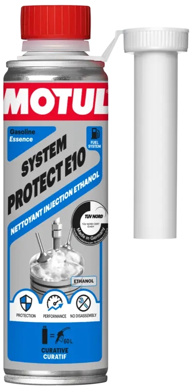 Motul System Protect E10 — це відновлювальний очищувач паливних форсунок, призначений для всіх типів бензинових двигунів: інжекторних і карбюраторних, з турбонаддувом або без нього, з каталізатором або без, що працюють на всіх типах бензину — етилованому та неетилованому, а також на паливі з вмістом етанолу, зрідженому нафтовому газі (lpg) та біопаливі.