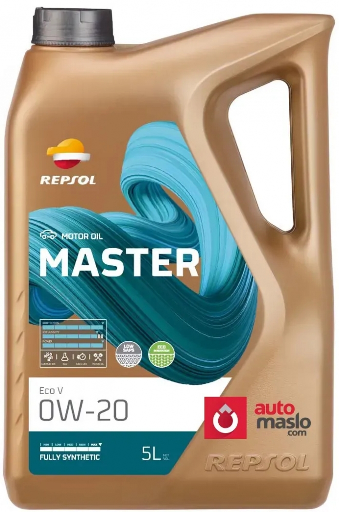 Repsol Master Eco V 0W-20 - високопродуктивна синтетична олива, розроблена для найновіших двигунів Volkswagen (Audi, VW, Seat та Skoda), які потребують допуску VW 508 00 / 509 00. Підходить для використання в бензинових і дизельних автомобілях. Також може застосовуватися в автомобілях інших марок, що потребують оливу з в’язкістю 0W-20 та рівнем якості ACEA C5. Унікальне поєднання базової оливи та сучасних присадок гарантує економію пального та надійний захист двигунів зі специфікаціями VW 508 00 / 509 00.