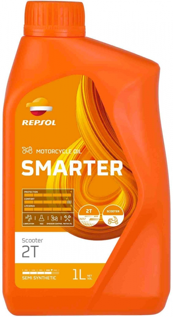 Repsol Smarter Scooter 2T — ідеальна олива для двотактних двигунів скутерів, спеціально розроблена для постійного режиму “старт-стоп”, характерного для цього типу техніки. Забезпечує високий рівень захисту від зносу, мінімізує викиди шкідливих газів і зберігає ефективну роботу двигуна за високих температур. Олива запобігає утворенню нагару на поршнях та деградації систем вихлопу. Підходить як для попереднього змішування з паливом, так і для двигунів з інжекторною системою змащення.