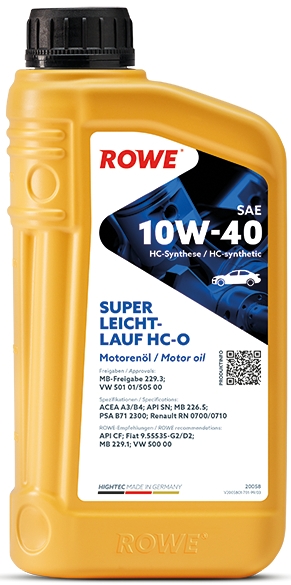 Rowe Hightec Super Leichtlauf HC-O SAE 10W-40 — моторна олива SHPD класу в’язкості SAE 10W-40 з хорошими антифрикційними властивостями, виготовлена на основі HC-Synthese базових масел.