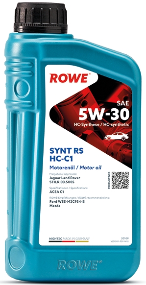 Rowe Hightec Synt RS SAE 5W-30 HC-C1 — моторна олива на основі відбірних HC-Synthese базових масел, призначена для бензинових і дизельних двигунів. Вона відповідає вимогам специфікації ACEA C1 завдяки дуже низькому вмісту сульфатної золи (SA) та зниженому показнику HTHS (високотемпературна в’язкість при високій швидкості зсуву).