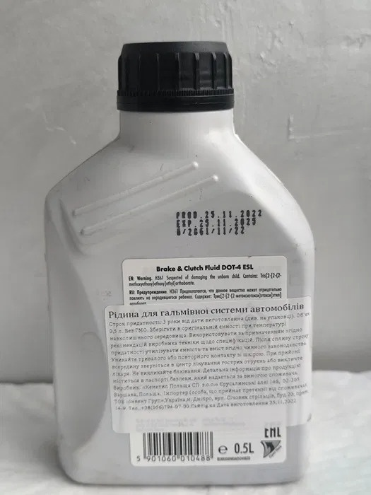 Сумісність: змішується з іншими DOT 4 рідинами, рекомендовано використовувати чисту рідину Shell