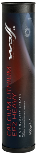 Wolf Calcium Lithium EP2 Heavy — літієво-кальцієва загущуюча змазка на основі мінеральних масел, що містить антиокислювачі, інгібітори корозії та присадки для екстремальних навантажень (EP/AW). Забезпечує підвищену водостійкість, надійний захист від корозії та ефективне змащування повільно обертових або важконавантажених підшипників.